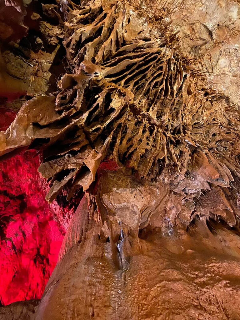 Certamente o que mais nos chamou atenção na visita das Grutas foram as impressionantes estalactites e estalagmites. Essas formações são de calcário e se desenvolveram ao longo de milhares de anos devido à ação da água e dos minerais presentes na rocha.