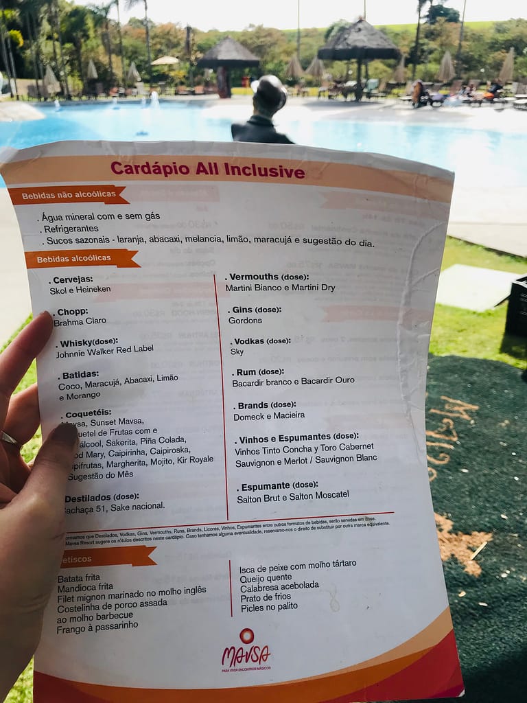 Dessa forma, o hóspede tem direito a diversas refeições durante todo o dia, inclusive bebidas alcoólicas e petiscos na beira da piscina.